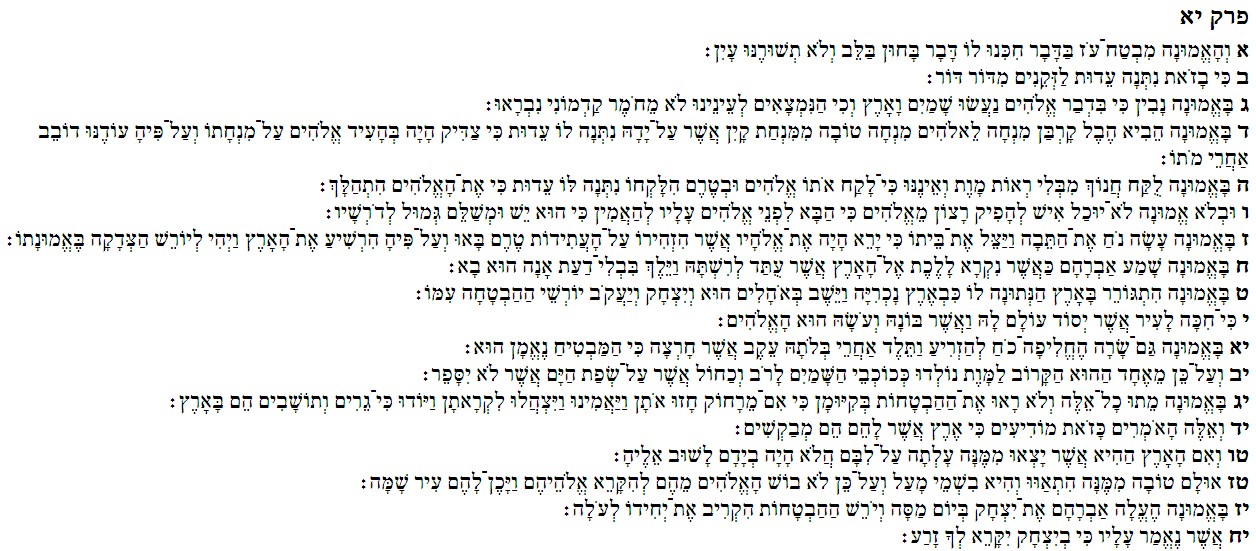 11:3 Through emunah we understand that the worlds were framed by the Dvar Elohim, so that things which are seen were not made of things which do appear.