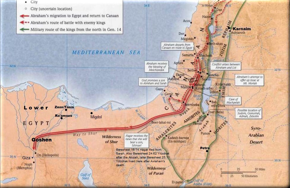 "Lekh Lekha" --"Go for yourself". Rashi comments: "For your benefit." "suit yourself" In the last of the ten tests Hashem again commands "And go for yourself to the land of Moriah." Hashem's message to Abraham is that He has no doubts as to the outcome of the trial. The trial is needed for the benefit of the human being. From this Chapter Avraham was first to be call Hebrew the cross over one. Abraham in Egypt foreshadows the slavery of the Jews.