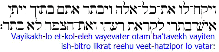 15:10 And he took to him all these, and divided them in the midst, and laid each piece one against another: but the birds divided he not.