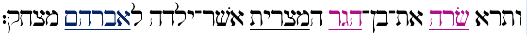 vatere Sarah et-ben-Hagar haMitzrit asher-yaldah leAvraham metzachek: