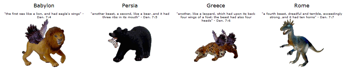 7:3 And four great beasts came up from the sea, diverse one from another.