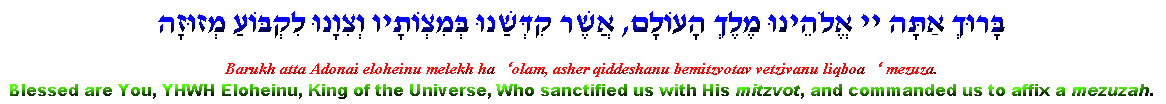 The procedure is to hold the mezuzah against the spot upon which it will be affixed, then recite a blessing: