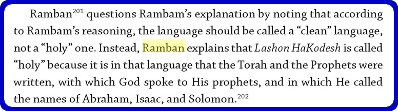 Why Hebrew known as L'ashon Kodesh - Holy tongue: Ramban Exodus 30:13 page 88