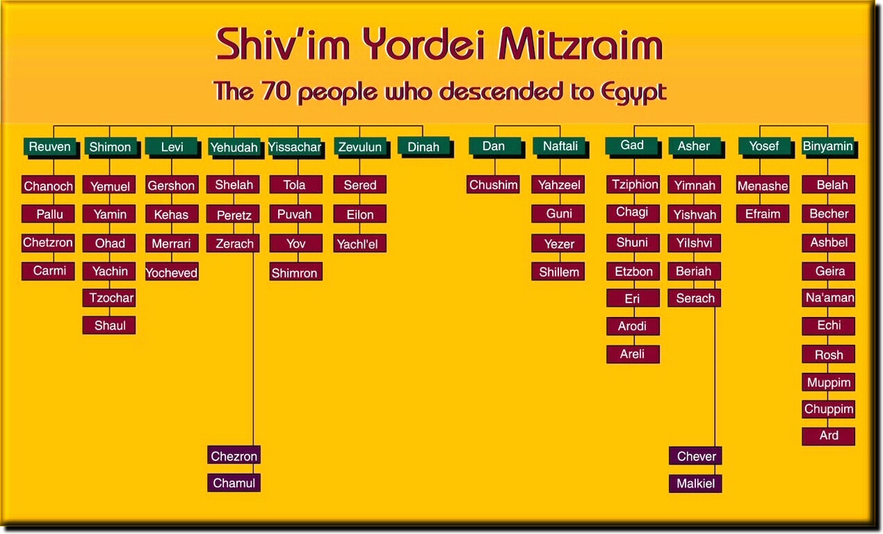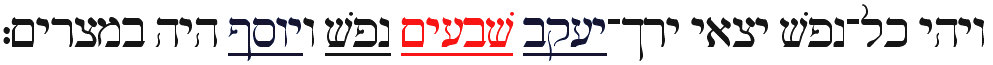 Vayehi kol-nefesh yotzei yerekh-Ya'akov shivim nafesh veYosef hayah veMitzrayim:
