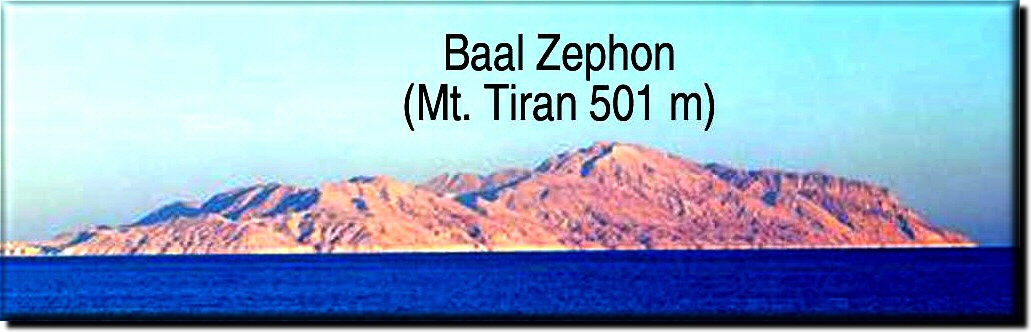 Baal-zephon he waters of Pi-hahiroth are "upon the face of" Baal-zephon, probably a mountain in the water. The waters of the Strait of Tiran are "upon the face of" the Tiran Island mountain, a mountain in the water.