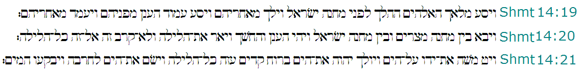 14:19 And the messenger of Elohim, which went before the camp of Yisrael, removed and went behind them; and the pillar of the cloud went from before their face, and stood behind them: