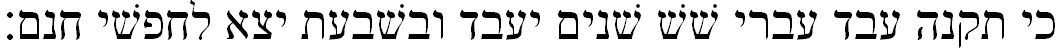 Ki tikneh eved ivri shesh shanim yaavodu vashviit yetze lakhafshi khinam: