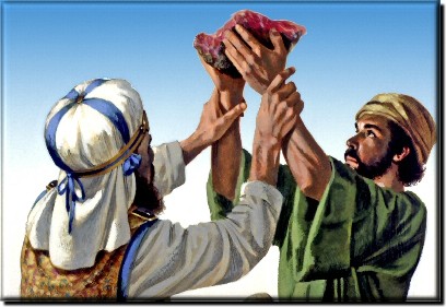 29:32 And Aharon and his banim shall eat the flesh of the ram, and the lechem that [is] in the basket, [by] the entrance of the ohel moed.