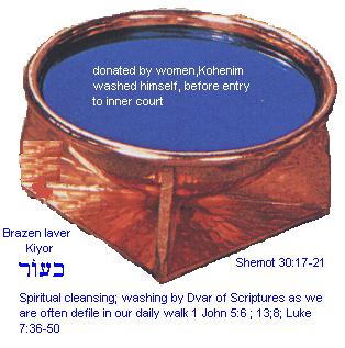 30:18 You shall also make a Kiyor (כּיּור) [of] nechoshet (כּיּור brass), and his foot [also of] nechoshet (brass), to wash [withal]: and you shall put it between the Ohel Moed (tent of meeting) and the Mizbeach (מזבּח Altar), and you shall put mayim therein.