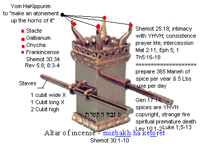 40:5 And you shall set the mizbeach (altar) of gold for the incense before the ark of the testimony, and put the hanging of the door to the Tabernacle.
