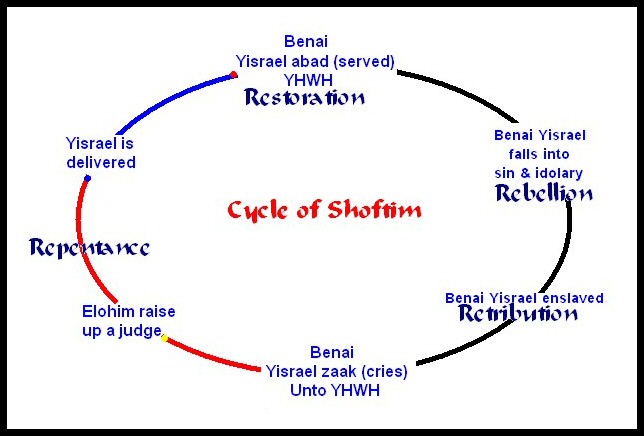 The events of this sefer cover the turbulent period in Yisrael's history from about 1380 to 1050 BC. Softim takes its title from the fact that it records the activities of 12 men and one woman, designiated as Softim and raised by Hashem to deliver Yisrael in times of declension and disunion after Yehoshua's death. No one was capable of such leadership as Yehoshua had exercised. The fourfold cycle so common in Yisrael's history it consist of the following cycle Rebellion, retribution, repentance restoration. Sefer Yehoshua is the sefer of victory while Softim is a sefer of defeat. The Softim were chosen from different tribes. Not all of them exercised jurisdiction over the entire land of Yisrael.
