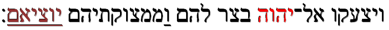 Vayitzaku el-ADONAI batzar lahem mimtzukoteihem yatzilem: