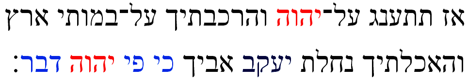 Then will you delight yourself in ADONAI, and I will make you to ride on the high places of the earth, and I will feed you with the heritage [promised for you] of Ya'akov your father: